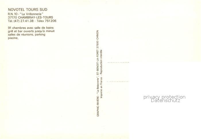 13082819 Chambray-les-Tours Novotel Tours Sud Billiard postalisch nicht gelaufen Erhaltung siehe scans [LiesaD40] KatCode: 11170037237050
