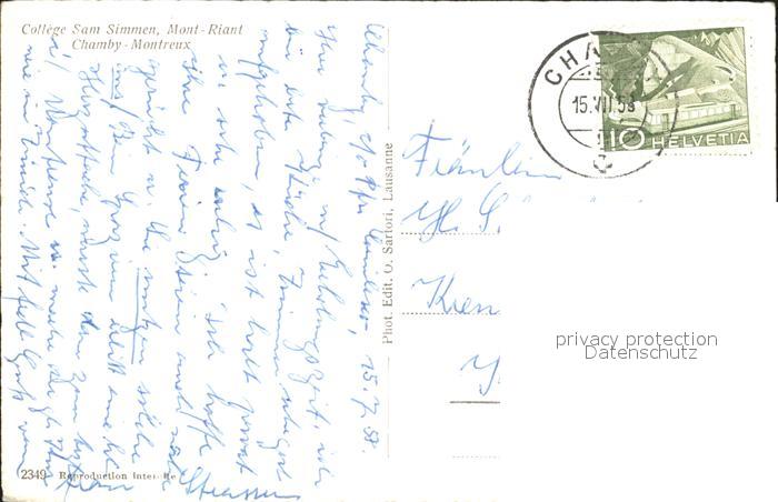 12344736 alte Postkarte Chamby College Sam Simmen Mont Riant Vue aerienne postalisch gelaufen Erhaltung siehe scans KatCode: 11470240845882