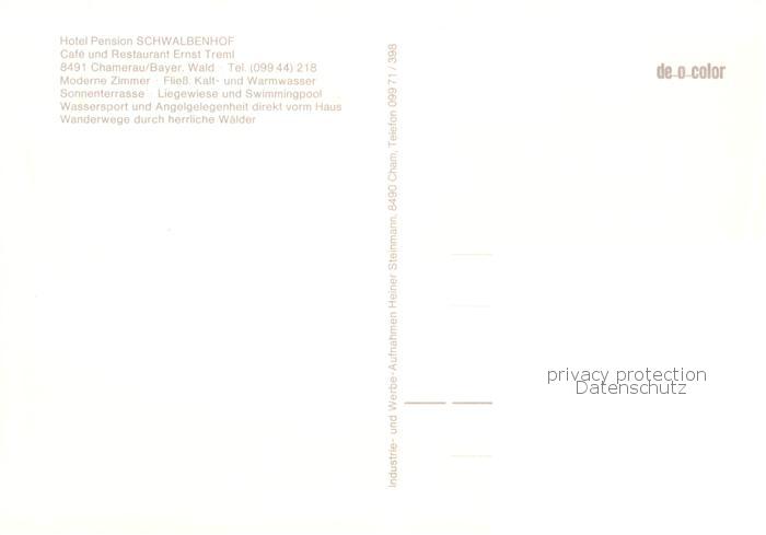 73866465 Chamerau Hotel Pension Schwalbenhof Gastraeume Panorama Seepartie postalisch nicht gelaufen Erhaltung siehe scans [WerneD78] KatCode: 11110009372117