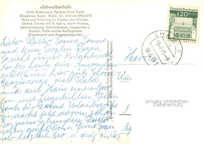 73672471 alte Postkarte Chamerau Schwalbenhof Blaubergersee Landschaftspanorama Burgruine Lamberg postalisch gelaufen Erhaltung siehe scans [FriedD77] KatCode: 11110009372117