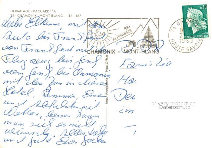 13828605 Chamonix 74 Haute-Savoie Hermitage Paccard et Mont Blanc postalisch gelaufen Erhaltung siehe scans [WerneD78] carte postale Wern Katcode 11170074274056