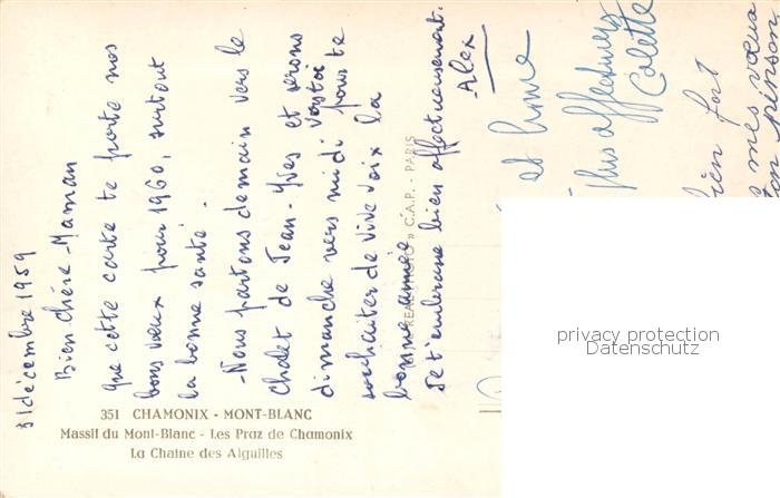 13838392 Chamonix 74 Haute-Savoie Panorama Massif du Mont Blanc Les Praz de Chamonix Chaîne des Aiguilles Alpes postalisch nicht gelaufen Erhaltung siehe scans [FriedD77] Frie Katcode 11170074274056
