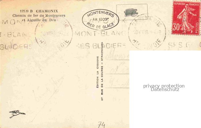 14109465 CHAMONIX BONNEVILLE 74 Haute-Savoie Chemin de fer du Montenvers et Aiguille du Dru postalisch gelaufen Erhaltung siehe scans [FriedD77] carte postale Frie Katcode 11170074274056