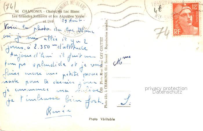 13574988 carte postale Chamonix Chalet du Lac Blanc Les Grandes Jorasses et les Aiguilles Verte et Dru postalisch gelaufen Erhaltung siehe scans [WerneD78] KatCode: 11170074274056