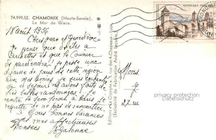 13620381 Chamonix La Mar de Glace postalisch gelaufen Erhaltung siehe scans [WerneD78] carte postale Wern Katcode 11170074274056