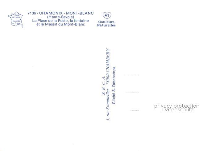 13595471 Chamonix La Place de la Poste la fontaine et le Massif du Mont Blanc postalisch nicht gelaufen Erhaltung siehe scans [WerneD78] Wern Katcode 11170074274056
