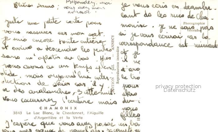 13559970 Chamonix Lac Blanc Chardonnet Aiguille d Argentiere Verte postalisch nicht gelaufen Erhaltung siehe scans [PaolaD17] KatCode: 11170074274056