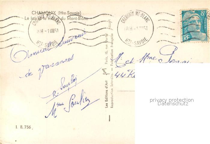 13640347 Chamonix Le lac et le massif du Mont Blanc Alpes postalisch gelaufen Erhaltung siehe scans [FriedD77] carte postale Frie Katcode 11170074274056