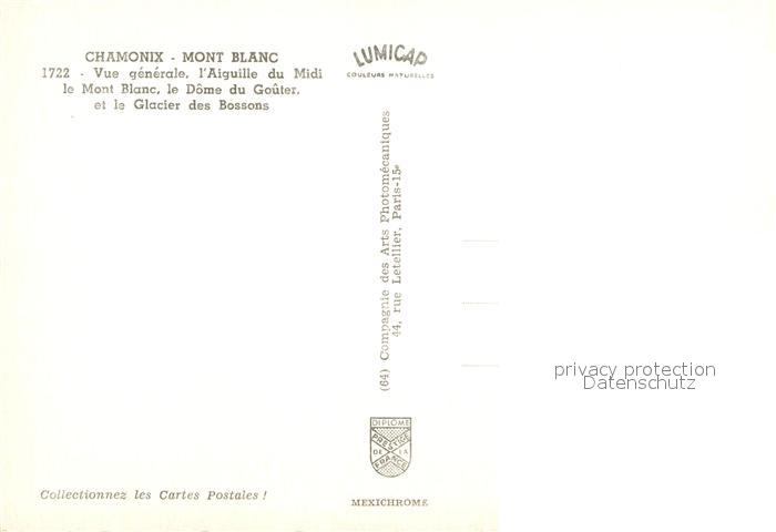 13005761 Chamonix Mont Blanc Vue generale postalisch nicht gelaufen Erhaltung siehe scans [WerneD78] KatCode: 11170074274056