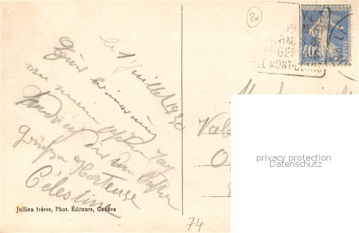 13487836 carte postale Chamonix Monument de Saussure et Massif du Mont Blanc Alpes Francaises postalisch gelaufen Erhaltung siehe scans [FriedD77] KatCode: 11170074274056