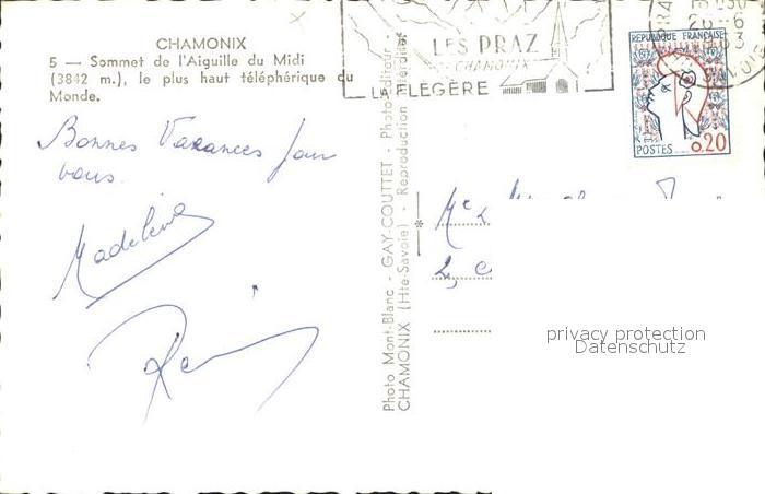 12269381 carte postale Chamonix Seilbahn Felsen postalisch gelaufen Erhaltung siehe scans KatCode: 11170074274056