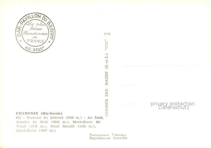 13142179 Chamonix Terrasse du Brevent au fond Aiguille du Midi Mont Blanc du Tacul Mont Maudi Mont Blanc postalisch nicht gelaufen Erhaltung siehe scans [FriedD77] KatCode: 11170074274056