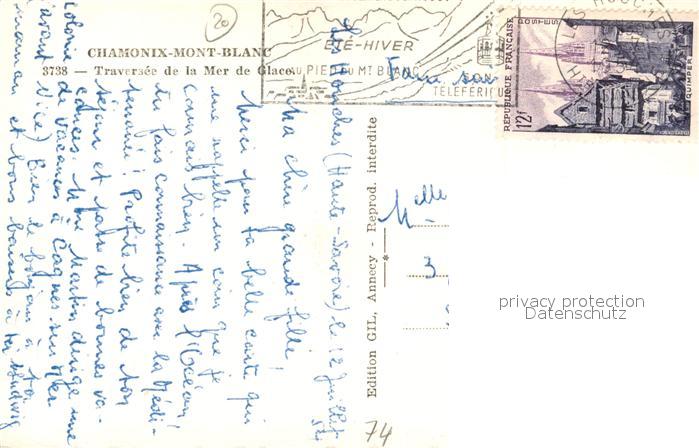 13487628 carte postale Chamonix Traversée de la Mer de Glace Alpes Francaises postalisch gelaufen Erhaltung siehe scans [FriedD77] KatCode: 11170074274056