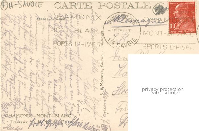 13689109 Chamonix Traversée de la mer de glace Bergsteiger Gletscherwelt postalisch gelaufen Erhaltung siehe scans [FriedD77] carte postale Frie Katcode 11170074274056