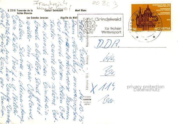12926594 carte postale Chamonix Vallee Blanche Mnt Blanc Couloir Gervasotti postalisch gelaufen Erhaltung siehe scans [AndreD76] KatCode: 11170074274056