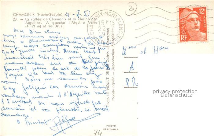 13487551 carte postale Chamonix Vallee de Chamonix et la chaine des Aiguilles Alpes Francaises postalisch gelaufen Erhaltung siehe scans [FriedD77] KatCode: 11170074274056
