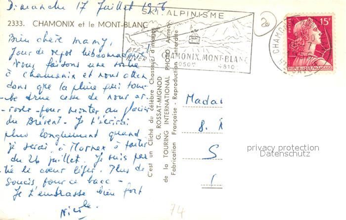 13488344 carte postale Chamonix Vue Generale et le Mont Blanc postalisch gelaufen Erhaltung siehe scans [FriedD77] KatCode: 11170074274056