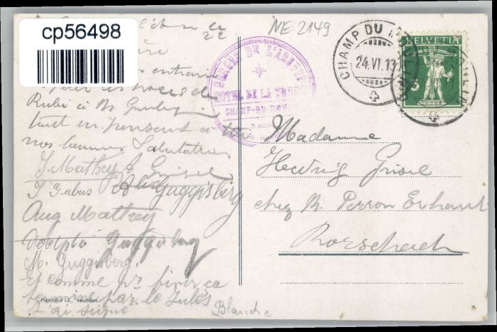 10719825 alte Postkarte Champ-du-Moulin postalisch gelaufen KatCode: 11470130405066