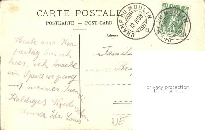 12160007 alte Postkarte Champ-du-Moulin Cafe Bellevue postalisch gelaufen Erhaltung siehe scans KatCode: 11470130405066