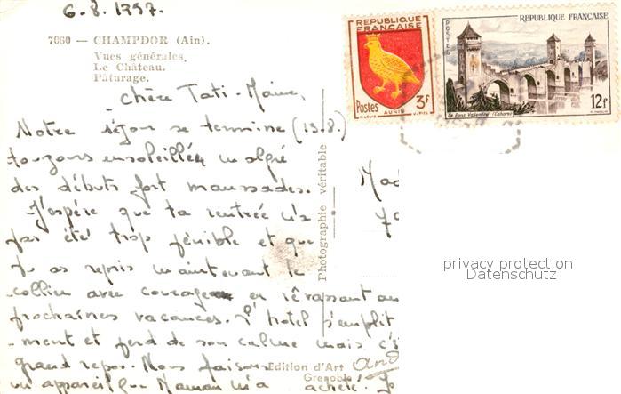 13579891 carte postale Champdor Vue Generale Chateau Pâturage postalisch gelaufen Erhaltung siehe scans [FriedD77] KatCode: 11170001401080
