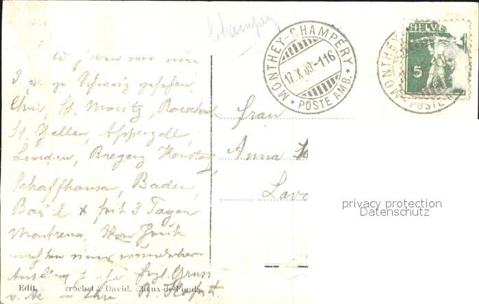 12588808 alte Postkarte Champery et les Dents Blanches postalisch gelaufen Erhaltung siehe scans [LiesaD40] KatCode: 11470230725480