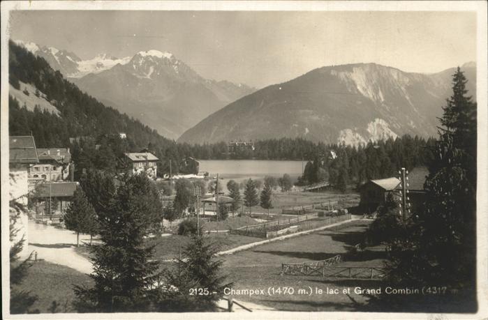 11378489 alte Postkarte Champex-Lac Panorama lac et Grand Combin Walliser Alpen postalisch gelaufen gute Erhaltung KatCode: 11470230700378