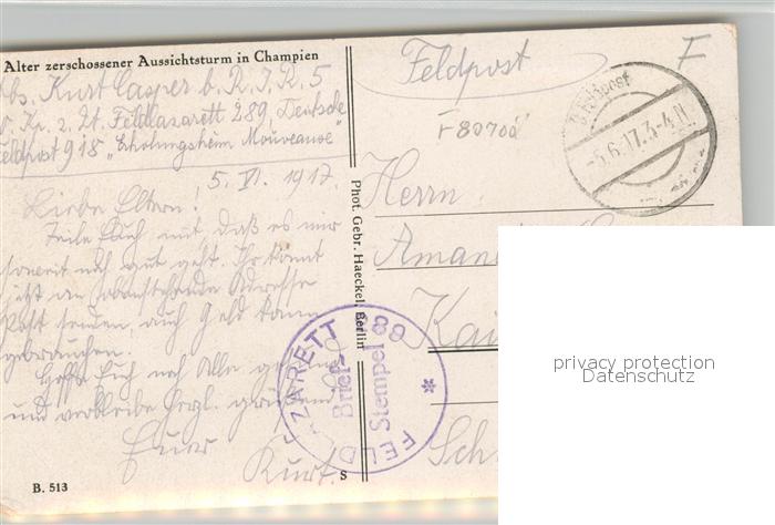13500903 carte postale Champien Zerstoerter Aussichtsturm postalisch gelaufen Feldpost – Stempel Erhaltung siehe scans [WerneD78] KatCode: 11170080380185