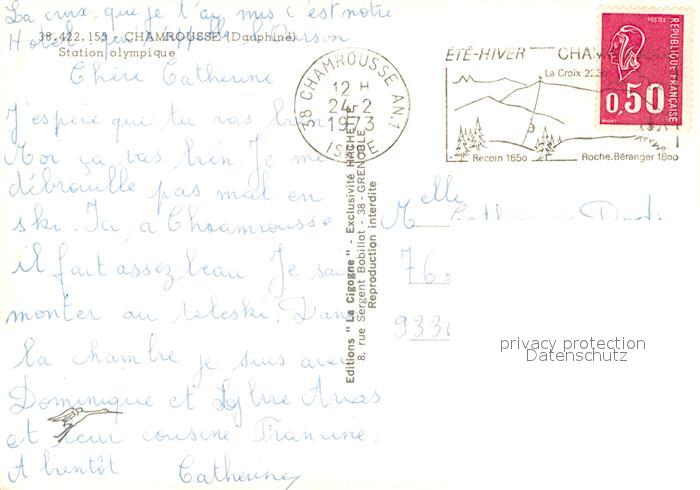 13580754 carte postale Chamrousse Station olympique Sports d hiver Alpes Francaises postalisch gelaufen Erhaltung siehe scans [FriedD77] KatCode: 11170038138567
