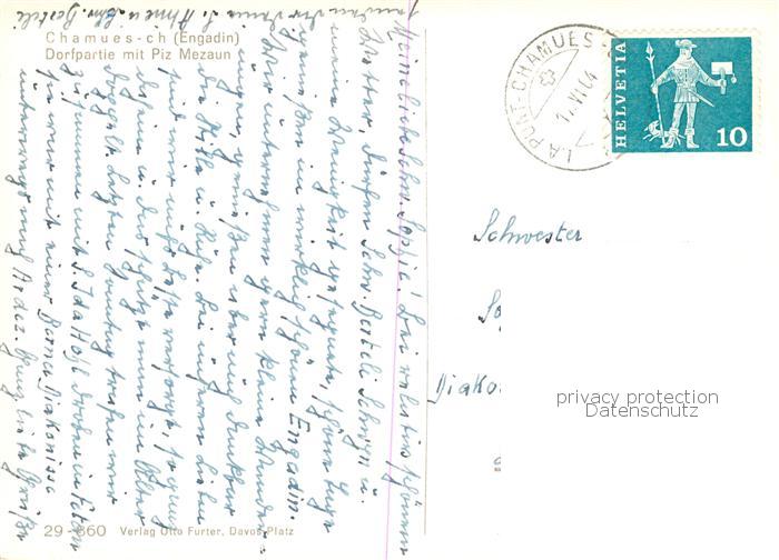 13853808 alte Postkarte Chamues-ch Dorfpartie mit Piz Mezaun postalisch gelaufen Erhaltung siehe scans [WerneD78] KatCode: 11470100335216