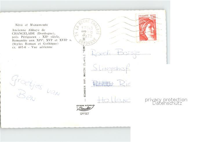12256912 carte postale Chancelade Ancienne Abbaye Vue aerienne postalisch gelaufen Erhaltung siehe scans KatCode: 11170024324102