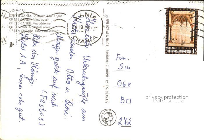 old postcard Chania Insel Kreta Fliegeraufnahme postalisch gelaufen Erhaltung siehe scans