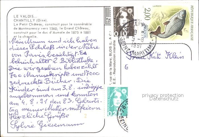 12493036 carte postale Chantilly Chateau postalisch gelaufen Erhaltung siehe scans KatCode: 11170060460141