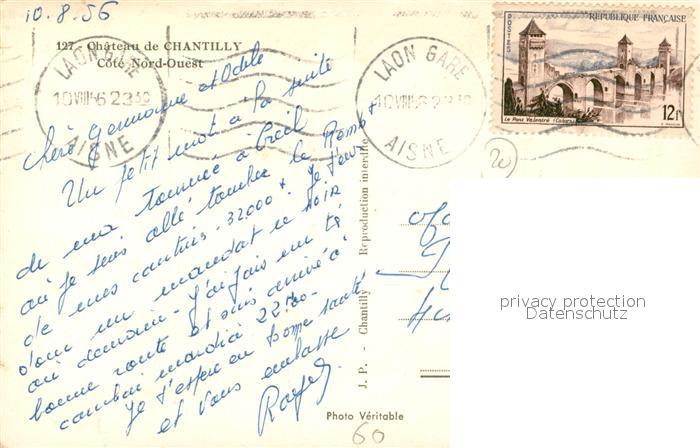 13524932 carte postale Chantilly Oise Chateau postalisch gelaufen Erhaltung siehe scans [FriedD77] KatCode: 11170060460141