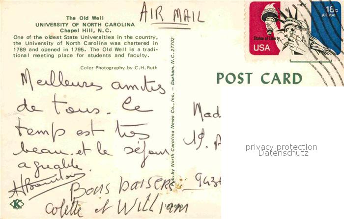 72766929 old postcard Chapel Hill North Carolina University of North Carolina postalisch gelaufen Erhaltung siehe scans [LiesaD40] KatCode: 14140350000000
