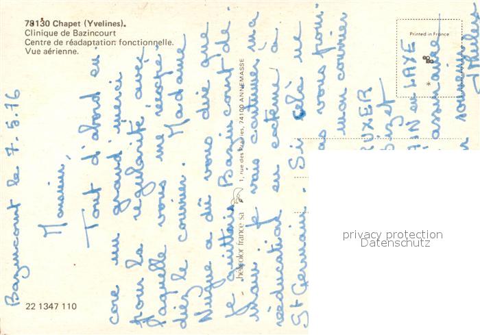 13512700 Chapet Clinique de Bazincourt postalisch nicht gelaufen Erhaltung siehe scans [KathaD81] KatCode: 11170078178140