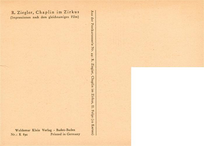 73893659 Chaplin Charly Schauspieler R. Ziegler Chaplin im Zirkus postalisch nicht gelaufen Erhaltung siehe scans [IrynaD87] Iryn Katcode 22560000001600