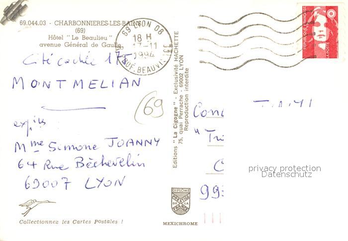 13109285 carte postale Charbonnieres-les-Bains Hotel Le Beaulieu postalisch gelaufen Erhaltung siehe scans [KathaD81] KatCode: 11170069169044