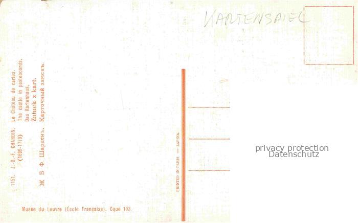 74020590 Chardin Jean-Baptiste-Simeon Kuenstlerkarte Kartenspiel postalisch nicht gelaufen Erhaltung siehe scans [IrynaD87] KatCode: 22240000003210