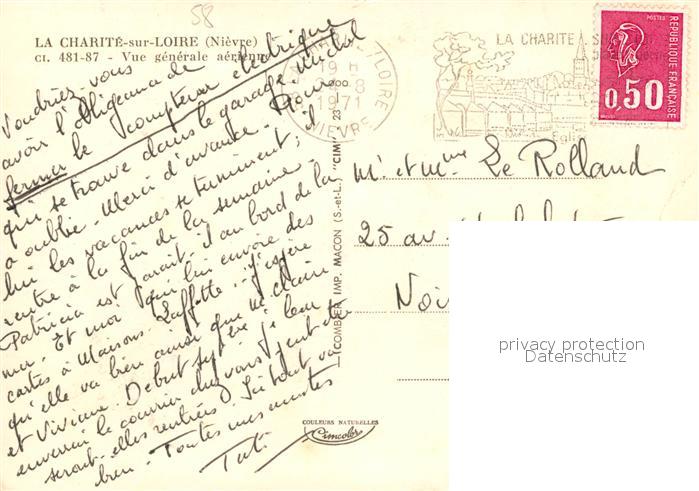 13109267 carte postale Charite sur Loire Fliegeraufnahme postalisch gelaufen Erhaltung siehe scans [KathaD81] KatCode: 11170058358194
