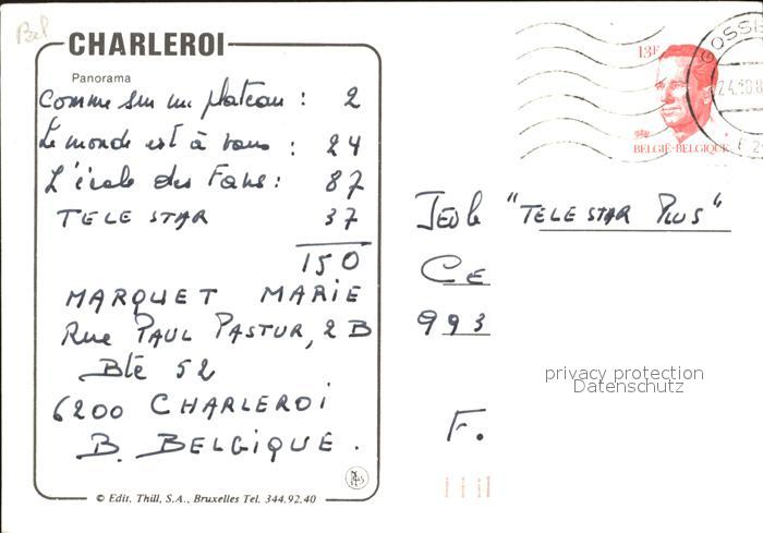 72105558 carte postale Charleroi Wallonie Fliegeraufnahme postalisch gelaufen Erhaltung siehe scans KatCode: 11070052000570