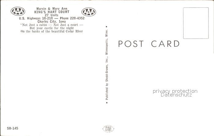 72217978 Charles City Iowa Kings Hart Court postalisch nicht gelaufen Erhaltung siehe scans KatCode: 14140170000000
