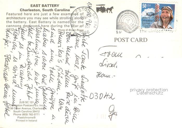73716885 old postcard Charleston South Carolina East Battery Architecture postalisch gelaufen Erhaltung siehe scans [FriedD77] KatCode: 14140430000000