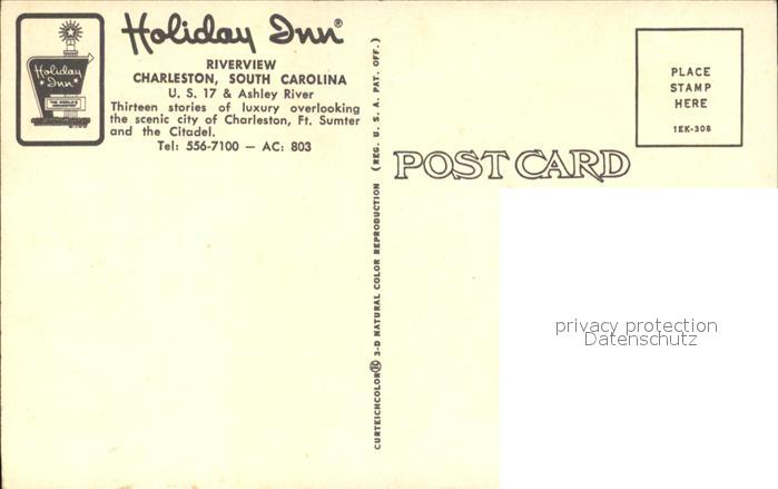 72330367 Charleston South Carolina Holiday Inn Riverview postalisch nicht gelaufen Erhaltung siehe scans KatCode: 14140430000000