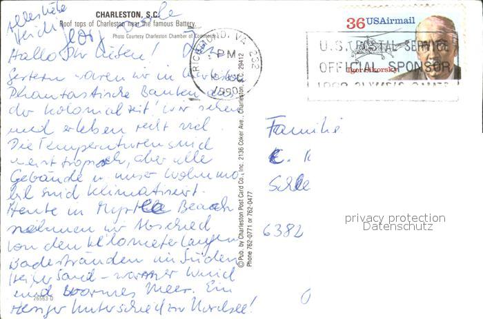 72179167 old postcard Charleston South Carolina Roof tops postalisch gelaufen Erhaltung siehe scans KatCode: 14140430000000