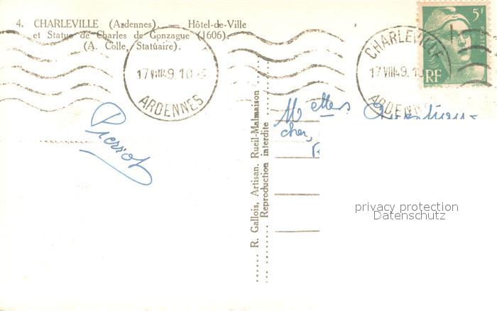 13630587 Charleville-Mezieres 08 Hotel de Ville et Statue de Charles de Gonzague postalisch gelaufen Erhaltung siehe scans [WerneD78] carte postale Wern Katcode 11170008108105
