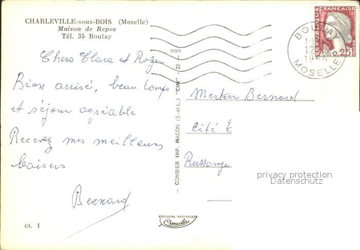 12303579 carte postale Charleville-sous-Bois Maison de Repos postalisch gelaufen Erhaltung siehe scans KatCode: 11170057457128