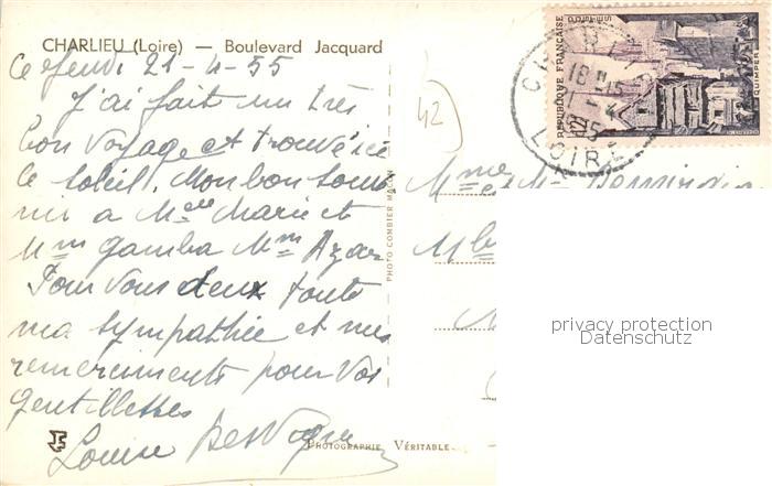 13791504 Charlieu Boulevard Jacquard postalisch gelaufen Erhaltung siehe scans [LiesaD40] carte postale Lies Katcode 11170042242052