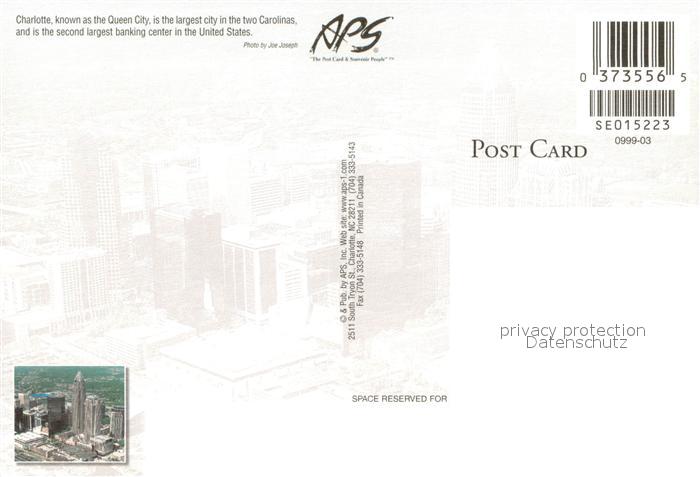 73743324 Charlotte North Carolina Fliegeraufnahme postalisch nicht gelaufen Erhaltung siehe scans [WerneD78] KatCode: 14140350000000