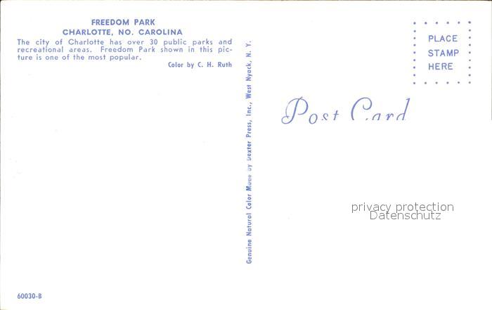 72444358 Charlotte North Carolina Freedom Park postalisch nicht gelaufen Erhaltung siehe scans KatCode: 14140350000000