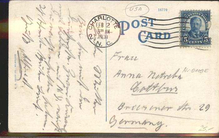 11031960 old postcard Charlotte North Carolina Mecklenburg Hotel postalisch gelaufen KatCode: 14140350000000